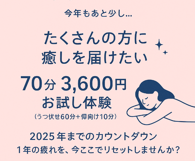 施術中や営業時間外は、お電話に出られないことがございます。恐れ入りますが、折り返しまでお時間をいただく場合がございますので、ご了承ください。キャンセルの場合、ショートメール・LINEより連絡いただけますと、確認がスムーズです。ご不便をおかけいたしますが、ご理解のほどよろしくお願いいたします。