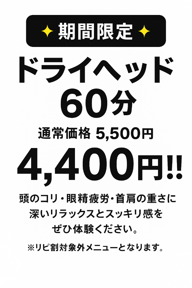 月末まではスタッフの出勤が不定期となっております。ご予約時と異なるスタッフが担当させていただく場合がございます。